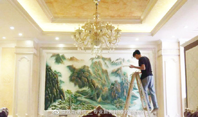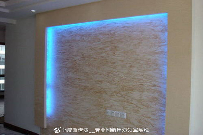 墻面裝飾藝術(shù)涂料,它通過特殊的涂裝工藝、專用的模具,在墻面上做出風(fēng)格各異的紋理、質(zhì)感、圖案,并擁有奇幻的折光映射效果,乳膠漆和藝術(shù)涂料結(jié)合使用。